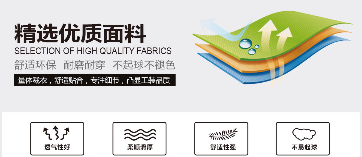 1:精選--高級環(huán)保面料 ,透氣性、吸汗性能高,觸感更柔細。
